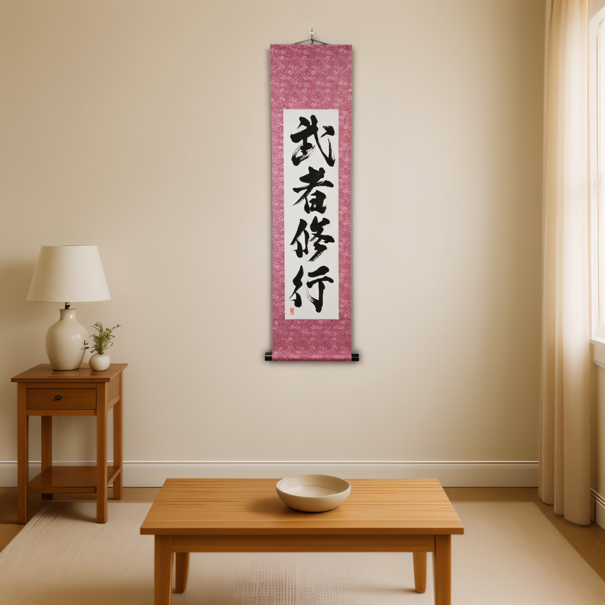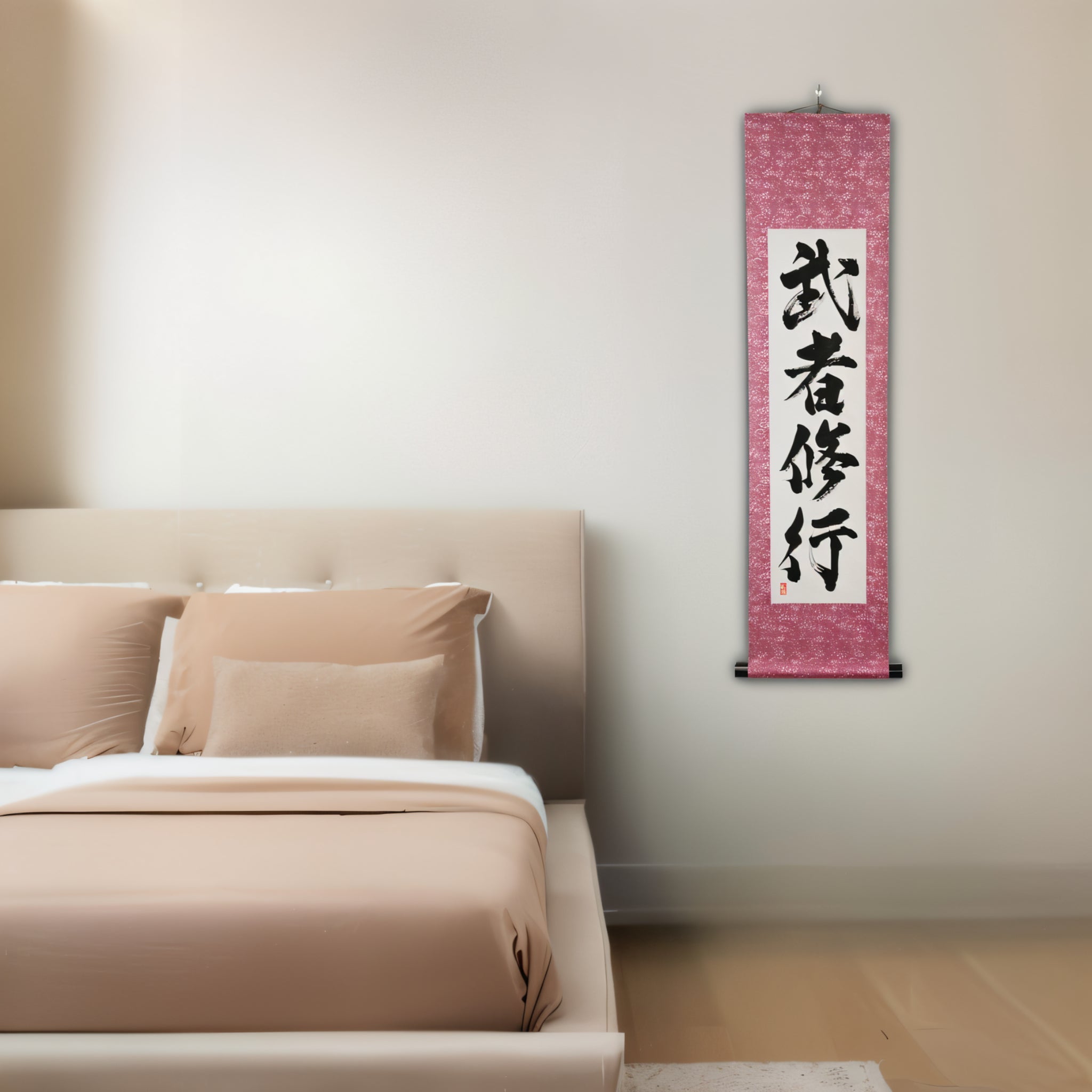 Este pergaminho de caligrafia japonesa incorpora a essência de 武者修行 (Musha Shugyo) — a jornada do Samurai de autodisciplina, crescimento e maestria. Enraizado profundamente na tradição Samurai, representa um compromisso vitalício com um treinamento rigoroso e a busca pela perfeição tanto na habilidade quanto no espírito.