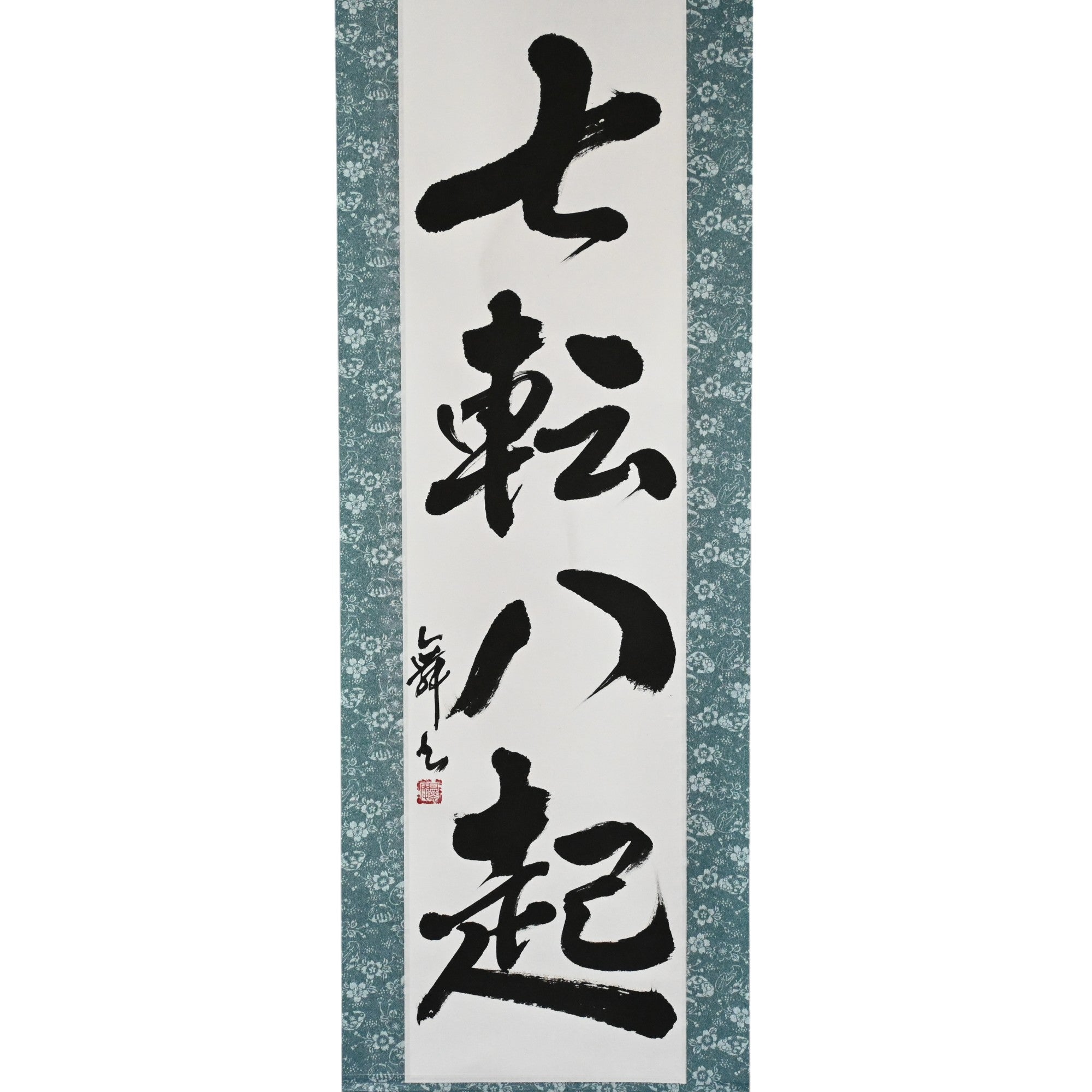 Este pergaminho de caligrafia japonesa apresenta a poderosa frase 七転八起 (Shichiten Hakki) — que significa "Cai sete vezes, levanta oito". Ela representa o espírito indomável do samurai: a determinação inabalável de se levantar novamente, não importa quantas vezes a vida te derrube.